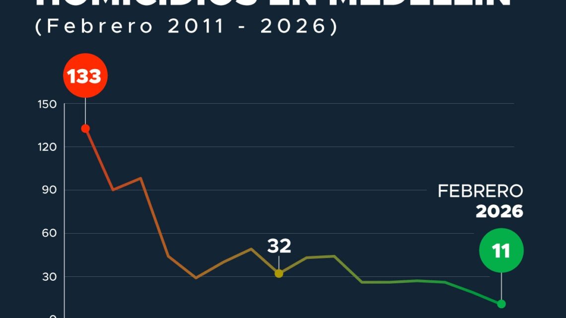 Medellín cerró febrero de 2026 con el registro más bajo de homicidios en los últimos 50 años. Con 11 casos en el mes y 19 días consecutivos sin muertes violentas, la ciudad consolida una tendencia sostenida de reducción que se refleja en un 13 % menos de homicidios frente al mismo periodo del año anterior. Este resultado se explica en una ofensiva contra las estructuras criminales, basada en control territorial, inteligencia y reacción operativa permanente.