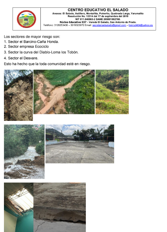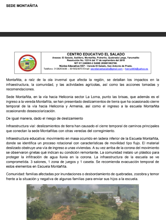 Crisis por ola invernal paraliza clases en el Centro Educativo El Salado y sus sedes en San Antonio de PradoMedellín,