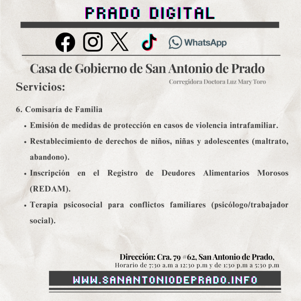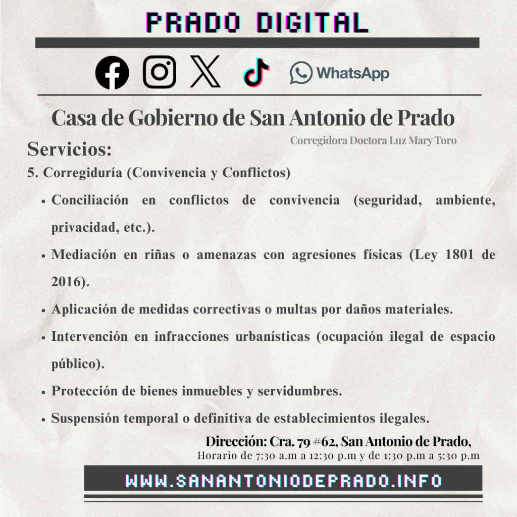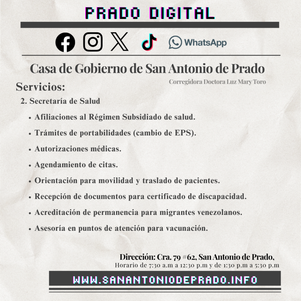 Llamado a la Acción Si vive en San Antonio de Prado , acérquese a la Casa de Gobierno y conozca todos los servicios que puede gestionar cerca de su casa. No espere a necesitarlos urgentemente: la información oportuna evita trámites largos y protege sus derechos.