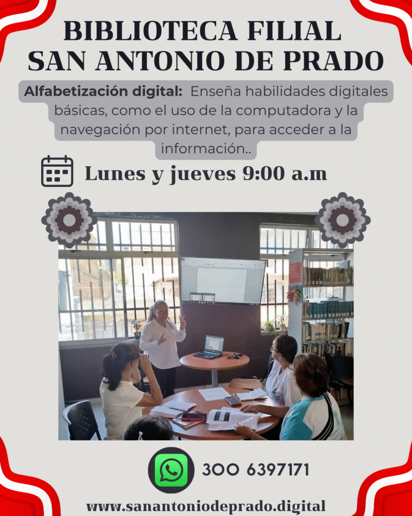Posteriormente la Biblioteca trasladó su sede a lo que hasta ese entonces eran los calabozos de la Inspección de Policía; luego por la reconstrucción de este espacio fue trasladada a la Escuela Carlos Betancur, de allí a la Casa de Gobierno. El 8 de marzo del 2004 se ubicó en la Casa de la Cultura “Celina Escobar Betancur”, por remodelación de este espacio, nuevamente la filial, en diciembre de 2015, fue traslada al Centro de Desarrollo Social de Pradito, allí abre sus servicios durante un tiempo. En 2018 abre sus puertas en la centralidad del corregimiento en el Centro de Desarrollo Cultural (antes Casa de la Cultura).
