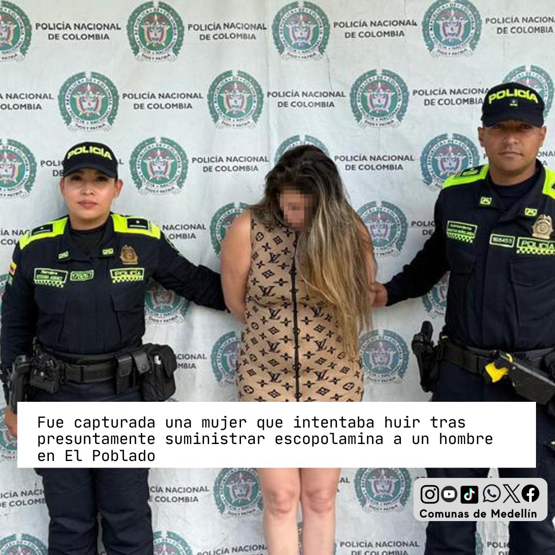 Fue capturada una mujer que intentaba huir tras presuntamente suministrar escopolamina a un hombre en El Poblado