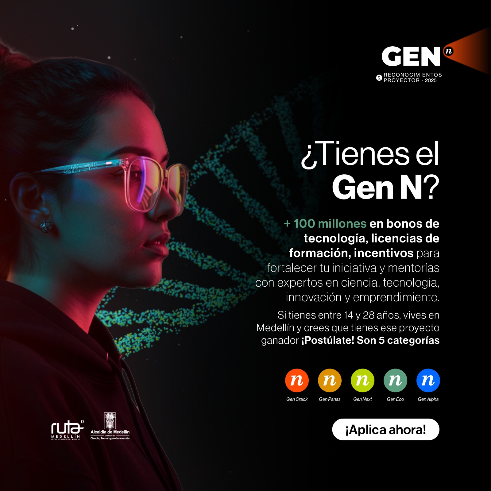 Los finalistas serán elegidos por la ciudadanía por medio de votaciones virtuales y un jurado experto seleccionará a los ganadores que se darán a conocer el 6 de diciembre en el Festival Gen N, un evento que espera reunir a más de 6.000 jóvenes en las instalaciones y alrededores del complejo de Ruta N para vivir experiencias tecnológicas e inmersivas, música en vivo, gastronomía y actividades interactivas.