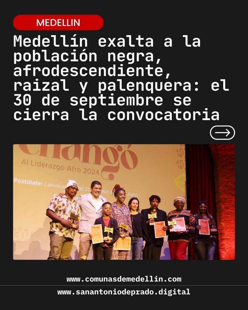 @comunasdemedellin Medellín exalta a la población negra, afrodescendiente, raizal y palenquera: el 30 de septiembre se cierra la convocatoria Como una manera de reconocer a quienes trabajan por la defensa de los derechos y la visibilidad de la identidad étnica, la Alcaldía de Medellín adelanta la convocatoria virtual para la séptima edición de los Premios Changó 2025, un homenaje a la población negra, afrodescendiente, raizal y palenquera que vive en la capital antioqueña. El llamado estará abierto hasta el 30 de septiembre. Se estima que en la ciudad viven 242.673 personas pertenecientes a estos grupos y que tienen más de 100 procesos organizativos y culturales. Este año serán seis categorías, que premiarán edades infantiles, organizaciones y colectivos, líderes o lideresas comunales, maestros o maestras, y líderes o lideresas que trabajan desde la gastronomía, así como adultos mayores que sobresalgan por su saber y experiencia. El enlace de inscripción está en el micrositio www.medellin.gov.co/es/gerencia-etnica/ Las personas que conozcan un liderazgo que merece ser visibilizado o hacen parte de un proceso que transforma a una comunidad, pueden registrarse en https://forms.cloud.microsoft/r/8i6KVfpWeA.