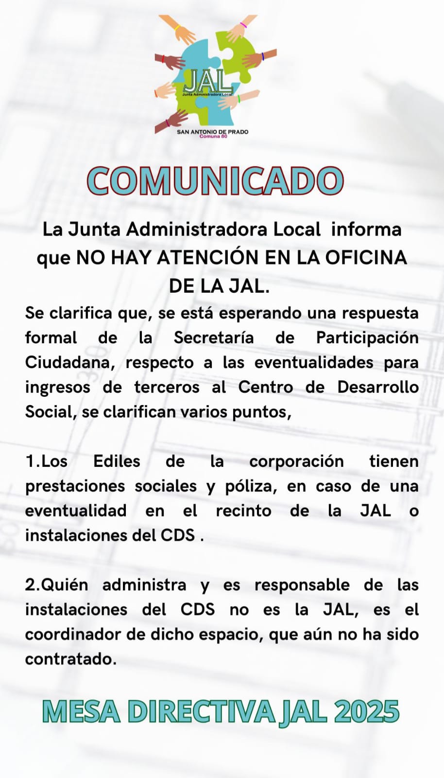 08/02/2025¡Un espacio para fortalecer los procesos artísticos, académicos y holísticos! INFO: 3113963608 3193120524 Cl. 42 sur 79-23 San Antonio de Prado, parque principal Tercer piso (supermercado La Oferta)- Jue. 10: Encuentro Red de creadores de Poesía (RCP). 7 p.m. 7 p.m. Vie. 11: Jam Session…