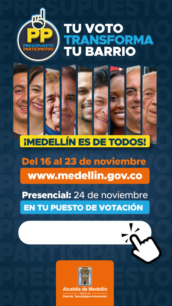 -Como ciudadano puedes definir la inversión de 1.5 billones de pesos, lo que se traduce en el 5 % de los recursos de libre inversión del Distrito de Medellín.