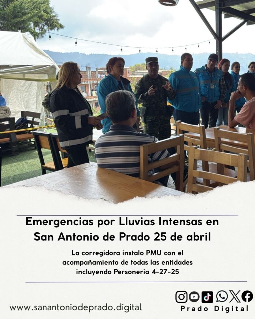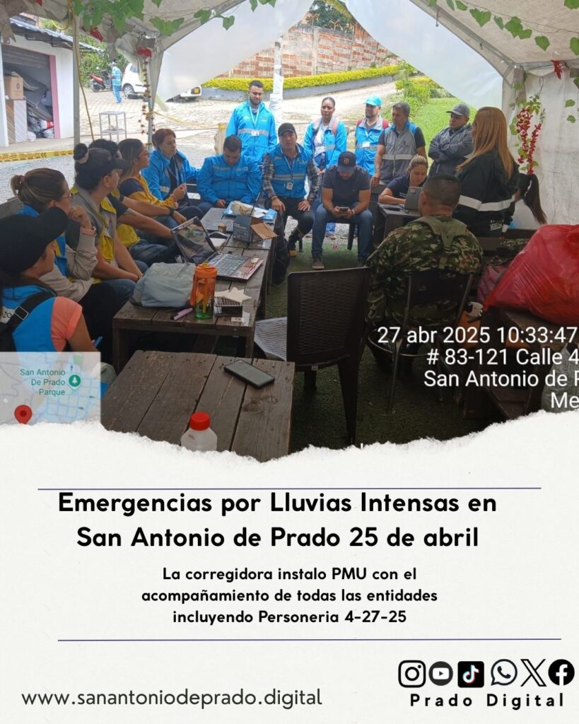 Naranjitos y otros sectores. La corregidora instalo PMU con el acompañamiento de todas las entidades incluyendo Personeria. Se hizo recorrido por el sector donde baja la quebrada la coherrera. Se hace evaluación y seguimiento de como va esta la situación. Se verificaron otros sectores donde el día de hoy hubo deslizamientos. Se están entregando desde el distrito las ayudas. Inclusion social continua haciendo caracterización. Medellin te quiere saludable realiza hace visitas con todo el equipo para determinar que intervencion requiere y brindar el acompañamiento. Buen Comienzo hace acompañamiento. El PMU se encuentra instalado de manera permanente.